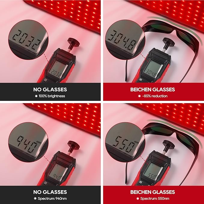 - 【Red Light Therapy Glasses】Keep your eyes safe during red light therapy! Our red light glasses block 600-1000nm red light and infrared rays, offering reliable eye protection for red light therapy while letting visible light through for a clear, comfortable experience