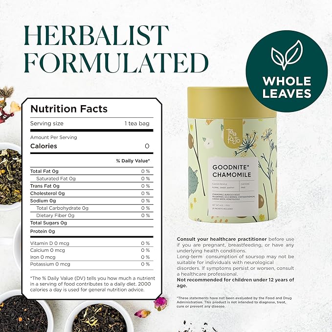 Tea Facto Goodnite* Chamomile Tea Bags with Chrysanthemum Tea for Soothing Comfort - 25 Bulk Pack Goodnight/Chamomile25