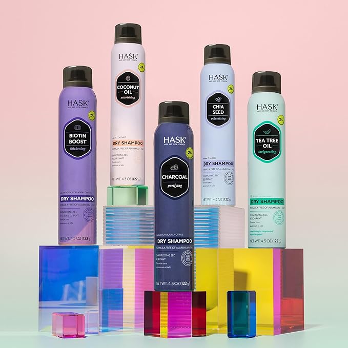 HASK Charcoal Purifying Dry Shampoo – Absorbs Oil, Purifies & Detoxifies Hair, Extends Time Between Washes, No Sulfates or Parabens, Cruelty-Free – 8.1oz