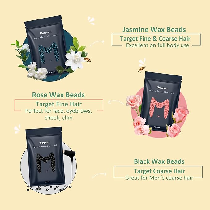 - TOUGH ON COARSE HAIR - Maxpearl Jasmine & Black Hard Wax Beads - these little beads are designed to tackle the toughest hair, strong enough to remove unwanted coarse hair from bikini areas, chest, back, legs, or any other part of the body.