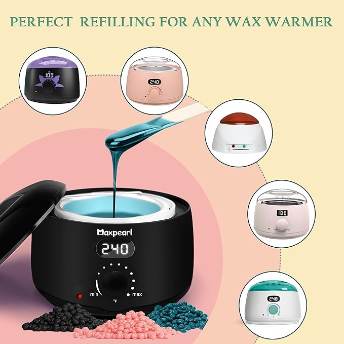 - LESS PAINFUL HARD WAX: Waxing doesn't have to be painful or sore. Maxpearl Hard Wax Beads are designed to only grip and remove hair, not the skin, making it perfect for coarse hair, short hair, intimate hair, and sensitive skin. Its gentle formula maximizes waxing comfort, minimizing skin irritation, redness, and pain.