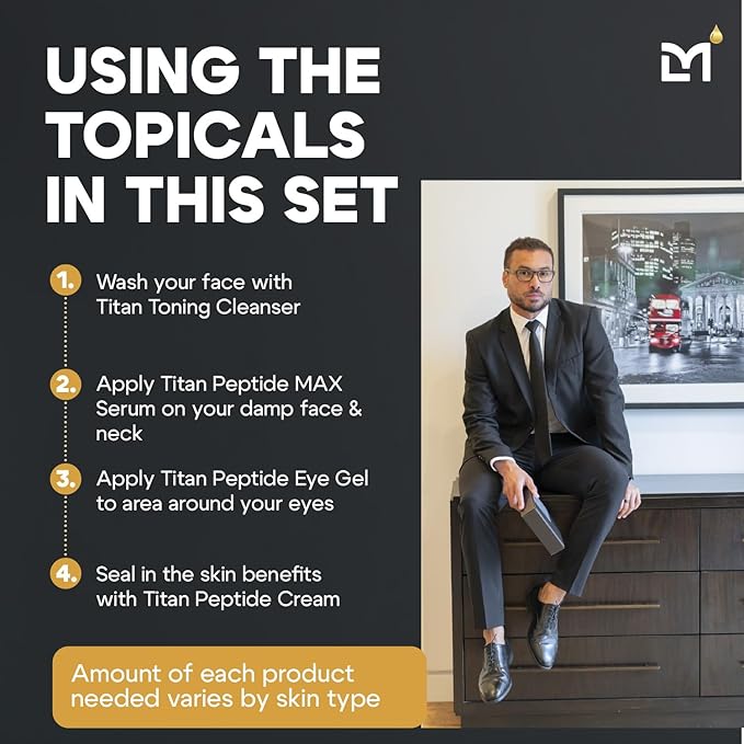 - What Gave Those Actors That Ageless Look: This anti-aging men's skincare set features the Titan Toning Cleanser, Titan Peptide MAX Serum, Titan Peptide Eye Gel, and Titan Peptide Cream; It's the skin care for men behind those 2025 Oscars close-ups