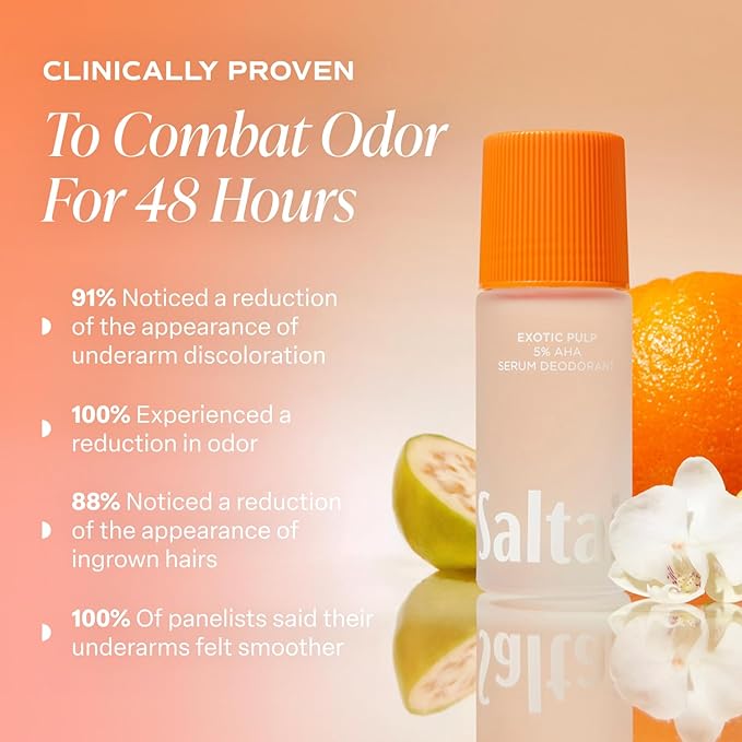 Saltair Serum Deodorant Exotic Pulp 2 Pack. 5% AHA Formula. Lactic Acid and Mandelic Acid Deodorant. Aluminum Free Odor Control for Women and Men. Travel Essentials, 2x 1.7oz Roll On