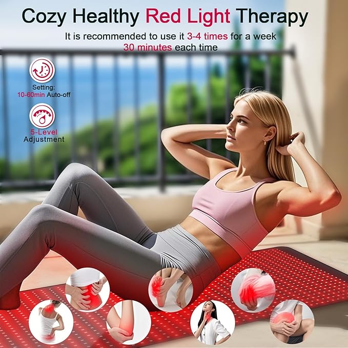 - << 10-60 MIN TIMER >> - Safe, hands-free sessions with auto-shutoff for worry-free operation. The default timing for auto-shutdown is 30 minutes. Providing an energy density of 150 mW/cm², equivalent to a $5,000 clinic device. Use it for 15-60 minutes during yoga, reading, or before sleeping.
