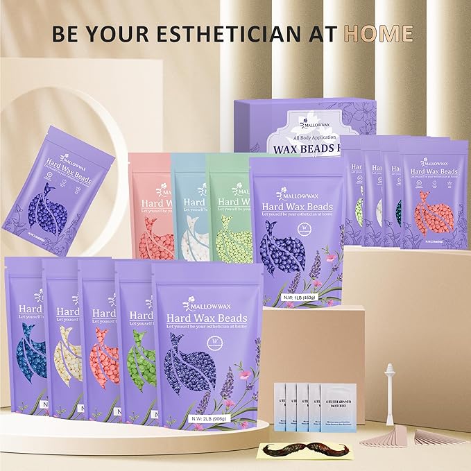 - Mess-Free & Easy to Clean: Mallowwax wax beads melt evenly and spread smoothly, reducing excess residue for a cleaner experience. The low-adhesive formula ensures minimal sticky mess, making post-wax cleanup simple. Achieve salon-quality results at home while keeping your skin free from unwanted hair without hassle, saving both time and money on professional waxing