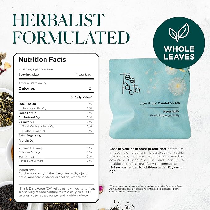 Tea Facto Liver It Up* Dandelion Tea Bags with Cassia Seeds, Ginseng, Licorice Roots, Red Date - Natural Ingredients, Zero Added Sugar, Zero Caffeine - 10 Count