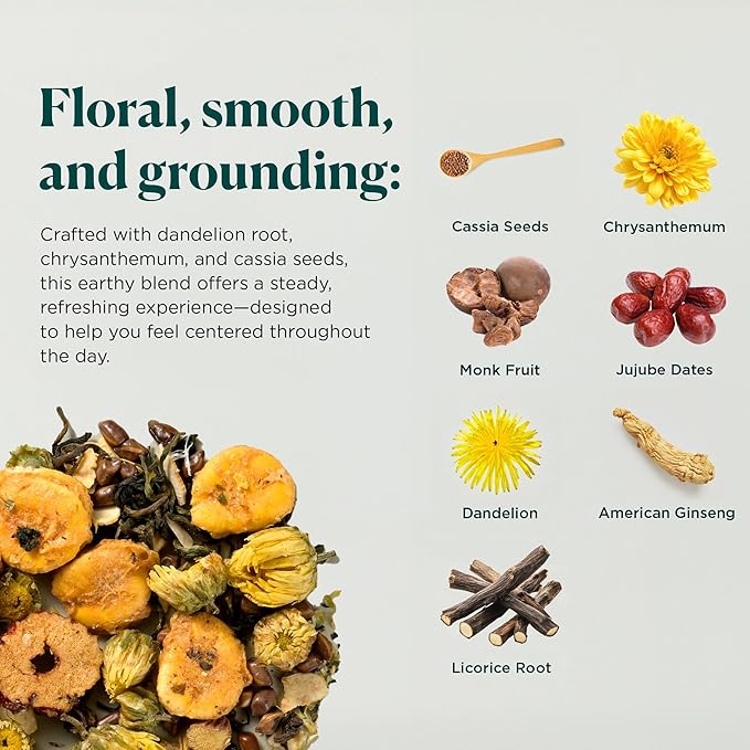 - ANCIENT HERBAL WISDOM: Our blend features Dandelion Root Tea & Dandelion Leaf Tea – used in TCM since 7th century for detox & liver, Cassia seeds, Chrysanthemum, Monk Fruit, Jujube Dates, American Ginseng, Licorice Root. Supports vitality & well-being.