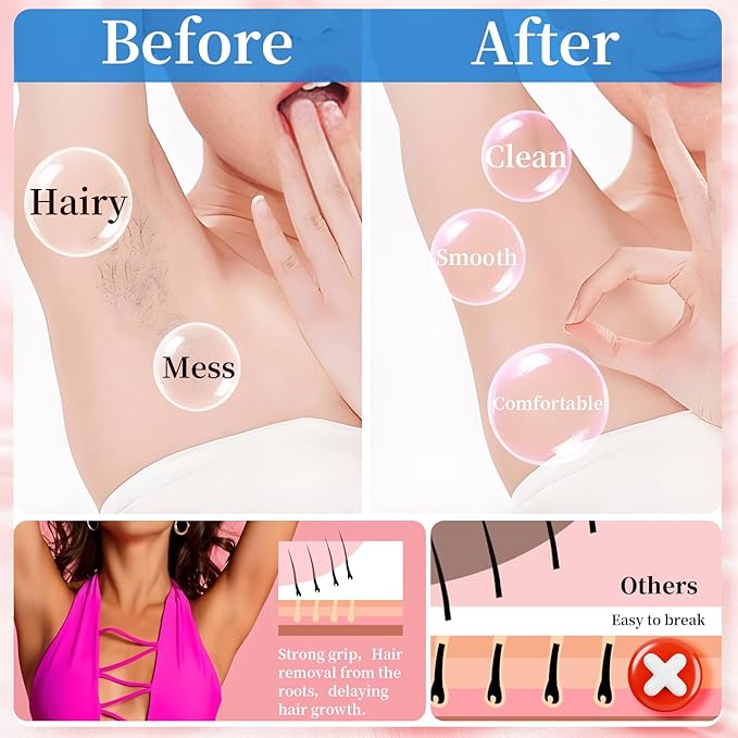 - [CONVENIENT AND EFFICIENT HAIR REMOVAL, NO NEED TO WORRY ABOUT HAIR PROBLEMS]: This high-quality hair removal wax is suitable for professional beauty salons for hair removal and also for beginners. Without any paper, you can easily and efficiently remove body hair at home, so that you can sunbathe in peace, smooth skin appears and shows off your charm. Whether it's a party or an everyday outing, you can show yourself confidently