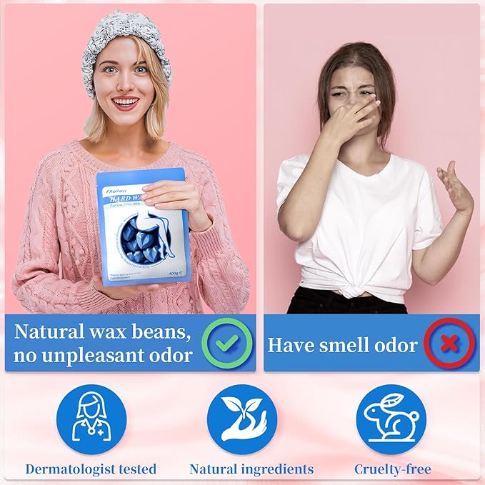 - [SUITABLE FOR THE WHOLE BODY AND SENSITIVE AREAS]: Wax beans hair removal can be used on the whole body, whether it is sensitive and delicate areas such as eyebrows, upper lips and face or armpits, bikini areas or large areas such as legs and back, it can handle easily and achieve gentle hair removal of all parts of the body