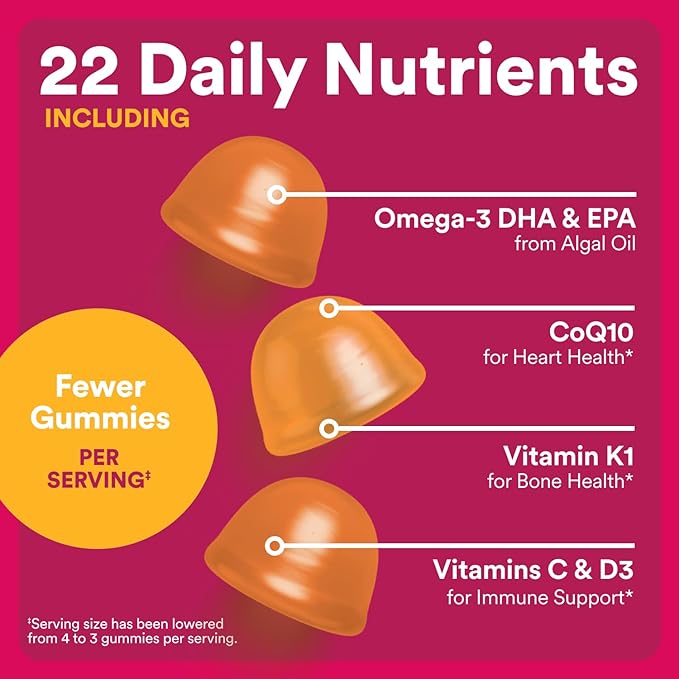 - WITH 22 NUTRIENTS TO SUPPORT DAILY NUTRIENT NEEDS: Our science-backed formula includes vitamins D3, B12, K1, and C, as well as CoQ10, biotin, folate, and Omega-3 DHA and EPA from algal oil all in a delicious serving.