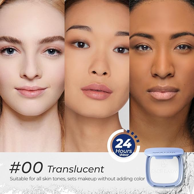 SACE LADY Face Powder Waterproof Setting Makeup, Oil Control Pressed Powder Compact for Women, Blurring Pores Matte Long Lasting Up to 24 Hours, Talc-Free and Cruelty-Free (#00 Translucent, 0.35Oz)