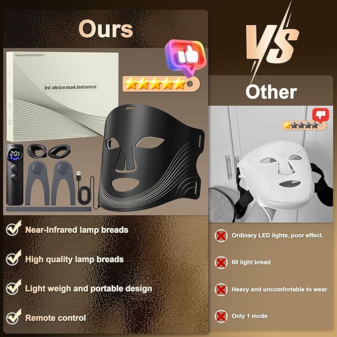 - LED Light Therapy Device(KFB290): This red light mask engineered with high quality LEDs. For optimal results, it is recommended to use the product 10-30 minutes per time.