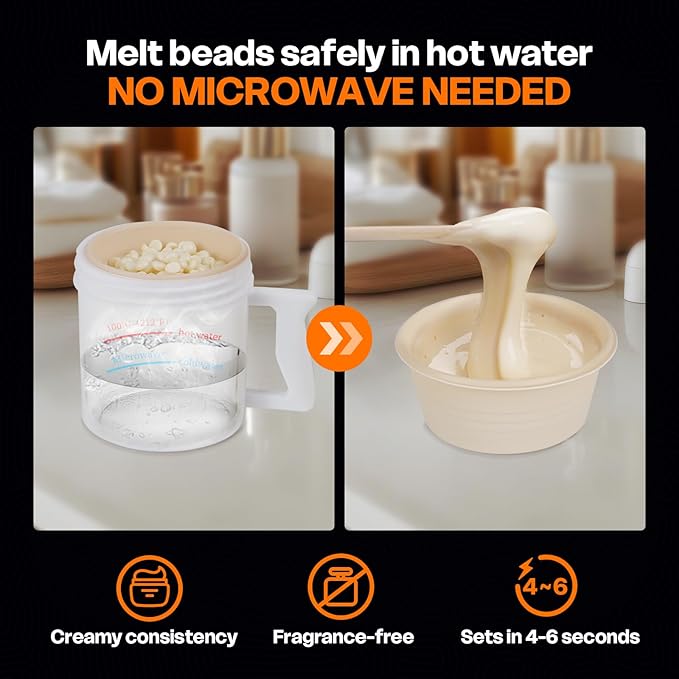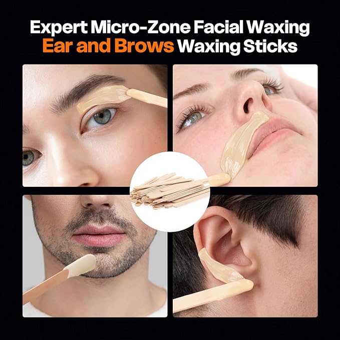 - 【HYPOALLERGENIC FORMULA - NO MICROWAVE NEEDED】 Enjoy a hassle-free experience with our non-sticky, quick-drying wax. The non-brittle formula won't crack or leave messy residue in sensitive areas like your nose and ears. The included precision heating pot melts wax to the perfect consistency—no microwave needed! Ergonomic applicators allow for controlled, precise application.