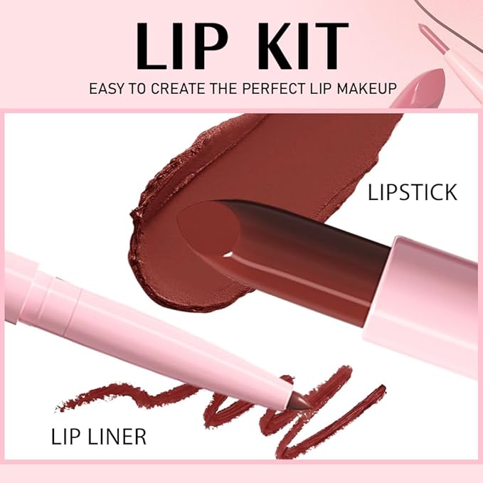 2 in 1 Matte Lipstick Lip Liner Pencil Set,Dark Red Waterproof Lip Stick Lip liner Combo for Old Women Long Lasting Lipstick,labiales mate 24 horas originales
