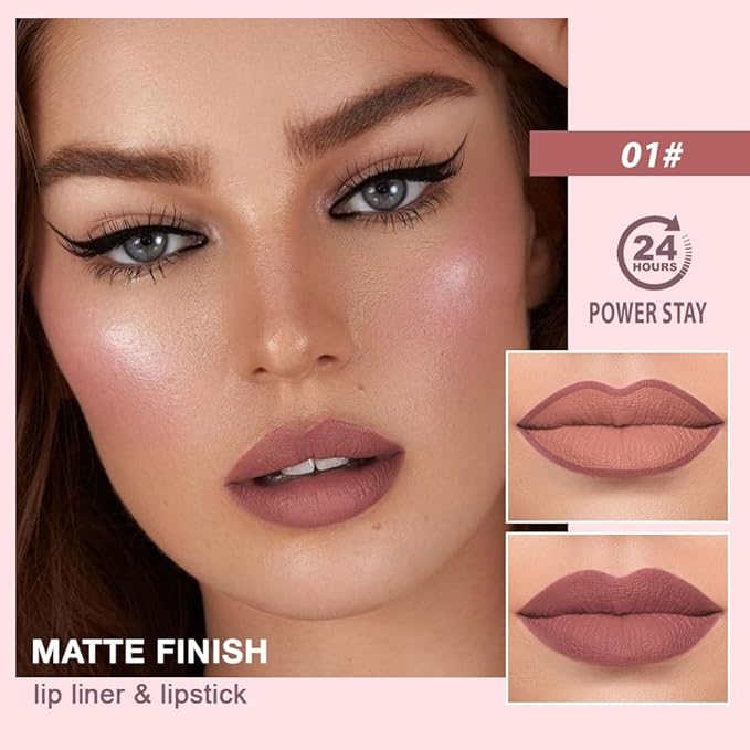 2 in 1 Matte Lipstick Lip Liner Pencil Set,Mauve Waterproof Lip Stick Lip liner Combo for Old Women Long Lasting Lipstick Crayon,labiales mate 24 horas originales
