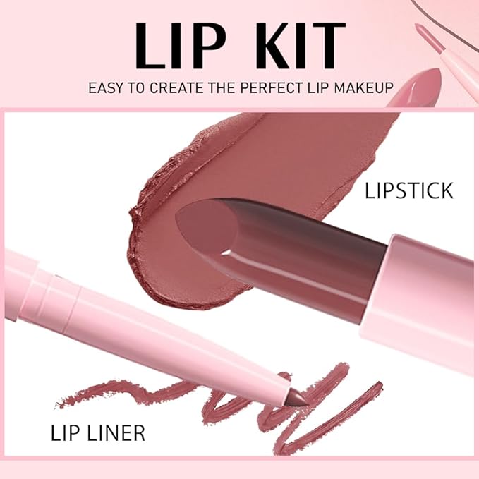 2 in 1 Matte Lipstick Lip Liner Pencil Set,Red Brown Waterproof Lip Stick Lip liner Combo for Old Women Long Lasting Lipstick,labiales mate 24 horas originales