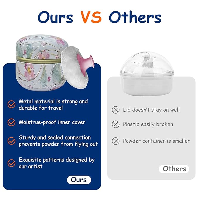 - GORGEOUS POWDER BOX: our powder case is made of tinplate, not easy to break and fade after being dropped, also can be used for a long time. the surface of the powder container has exquisite patterns designed by our artist, bring visual enjoyment.
