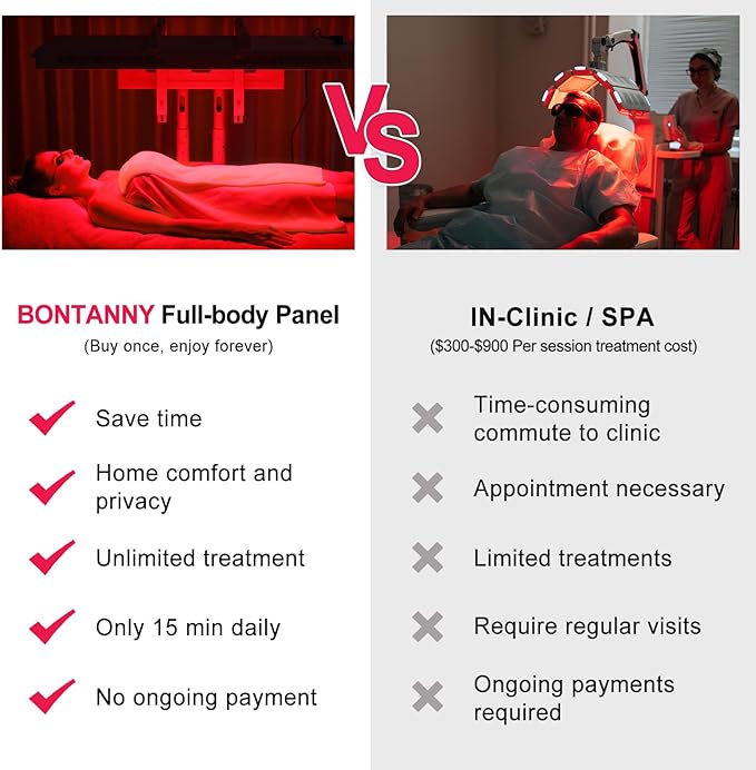 - Compatible with BONTANNY Stands - Designed to pair with BONTANNY's horizontal/vertical stands (sold separately) for flexible positioning. The sleek 42.9"×16.5" red light therapy panel provides full-body coverage whether standing, seated, or reclining.