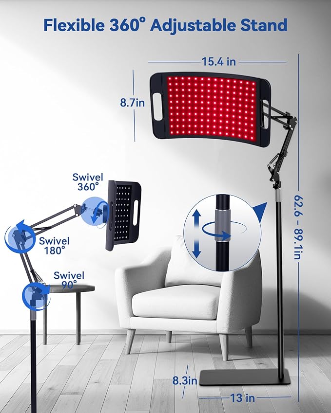 - [Simple Control & 9.8ft Longer Reach Cord] Equipped with an easy-to-read controller for quick adjustments, this red light stand features a 9.8ft cord for flexible placement—use it from your sofa, bed, or workout area without moving the unit, making each session more convenient and comfortable