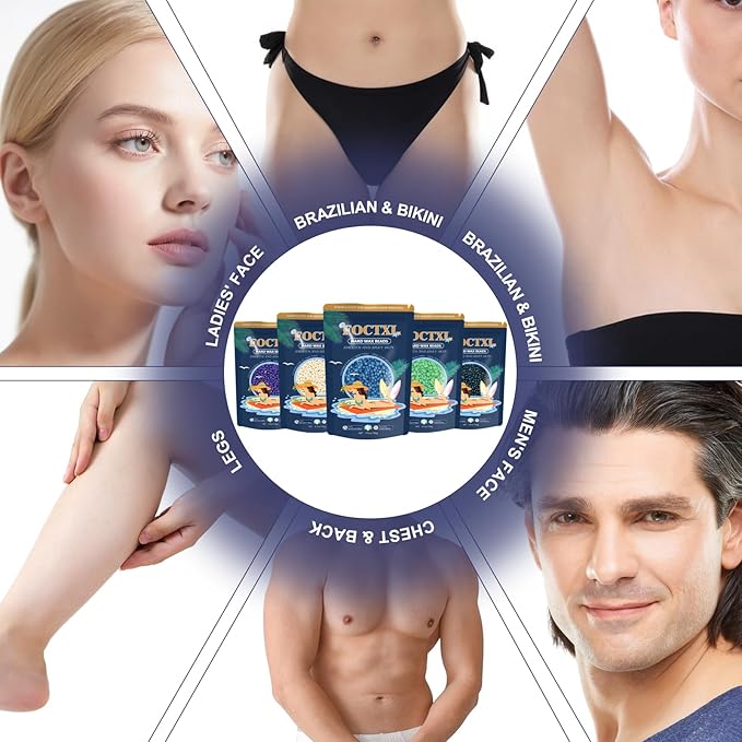 - [High-efficiency Hair Removal] - Hard wax kit suitable for full-body hair removal for both men and women, perfectly suited for the face, eyebrows, bikini line, Brazilian waxing, arms, legs, underarms, and more. Waxing removes hair from the root, slowing hair growth. The hair removal effect lasts for 6-8 weeks. Enjoy silky-smooth, hair-free skin.