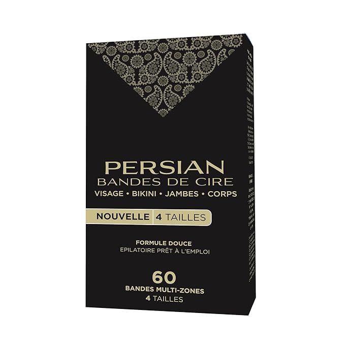 Persian Multi-Zone Wax Strips | 4 Sizes, 60 Strips | Pre-Lined for Face, Legs, Body, Bikini & Underarms | Hair Removal Waxing Kit with Aftercare Oil | Easy, Ready-to-Use | All-Natural Ingredients