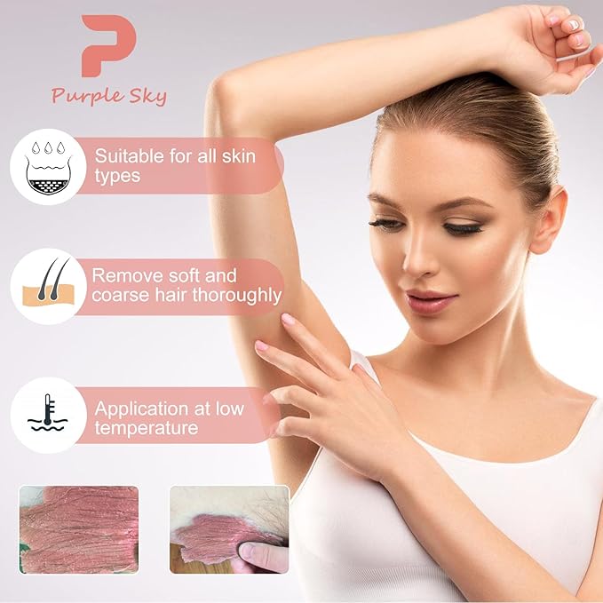 - 【Perfect for Sensitive Skin & Thick Hair】 This hypoallergenic wax is infused with natural ingredients like Jasmine, making it ideal for sensitive skin. It reduces redness and irritation, providing a comfortable, pain-less waxing experience even on the most delicate areas and thick hair