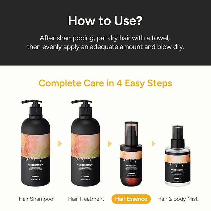 - 2-in-1 Perfumed Hair Essence & Treatment Oil - A dual-action formula that combines the fast-absorbing softness of a lightweight essence with the long-lasting nourishment of a treatment oil—perfect for dry, frizzy, or color-treated hair.