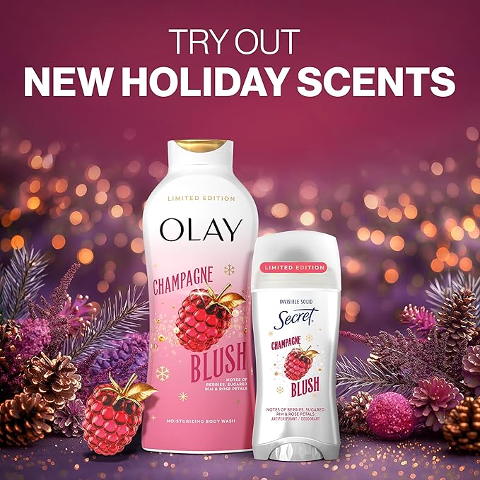 Secret Fresh Antiperspirant Deodorant for Women, 72hr Breathable Odor Protection with Pro-Hyaluronic Acid, Holiday Invisible Solid, Champagne Blush with Berries, Sugared Rim & Rose Petals Scent, 2.6oz