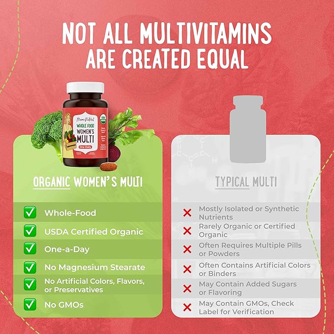 - Mama Natural Quality – Created by a nutritionist and mom of three, this whole food women’s multivitamin reflects years of trust from millions of women. USDA Certified Organic. Third-Party Tested. Non-GMO. Made in a GMP-certified facility in the USA.*