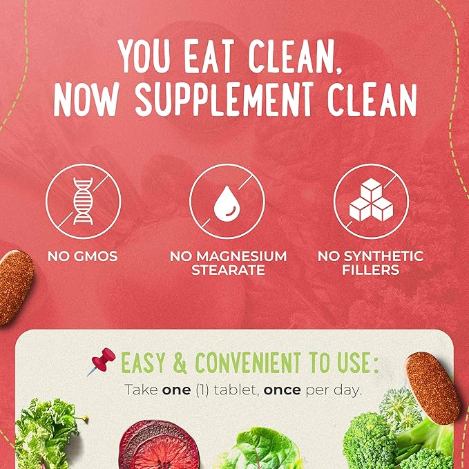 - Supports Beauty, Energy & Mood* – Our women’s multivitamin is formulated with methylated B12, iron, and biotin to support natural energy production, healthy immune function, and glowing hair, skin, and nails — without the synthetic junk.*