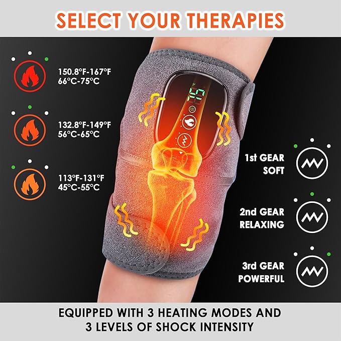 - 【Comfortable for All Users】Designed with an adjustable ergonomic strap that fits most body types, this massager provides soothing relief for seniors and active users alike. Effectively eases joint swelling and cold-weather discomfort for comprehensive care.
