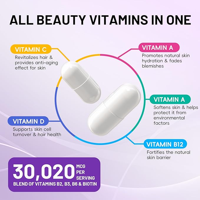 - ๐ Biotin Supplement with Hyaluronic Acid and Collagen - OnHeal Biotin Supplement contains potent Biotin, Collagen, Keratin, and other essential nutrients to naturally support your health and beauty. Enhance hair vitality with our powerful hair growth vitamins Our hair growth vitamins contain biotin, collagen, and essential vitamins B1, B2, B3, B6, and B12 to promote longer, thicker, stronger hair.