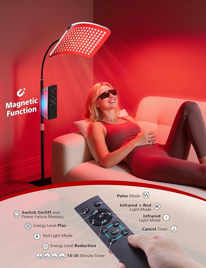 - Upgraded Light Combination Modes & Remote Control: Customize 5 energy levels (20%-40%-60%-80%-100%), 6 modes (660nm mode, 660nm pulse mode,50% 660nm +50% 850nm mode, 50% 660nm +50% 850nm pulse mode,30% 660nm + 70% 850nm mode, 30% 660nm + 70% 850nm pulse mode), and 10-30min timers via remote. Hands-free operation lets you adjust settings while reading or watching TV—perfect for effortless home use