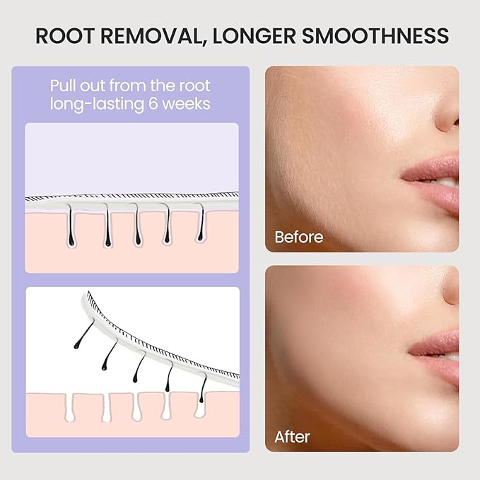 - Get Salon Worthy Precision Right At Home: Our 2 specialized applicators (fine-tip for cheek/lips/chin, fan-shaped for brows) , removing 1mm fine facial hairs from the root, let you shape crisp, salon-quality face in just minutes at home
