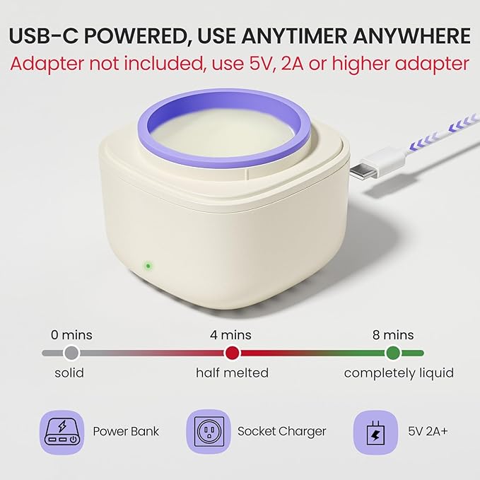 - Wax On-the-Go, Anywhere, Anytime: This 2.32” warmer uses USB-C power, plug it into your power bank, laptop, or wall socket, groom your cheeks and fix lip fuzz at a hotel, or touch up brows on a work trip. Stay flawlessly smooth, no matter where your day takes you