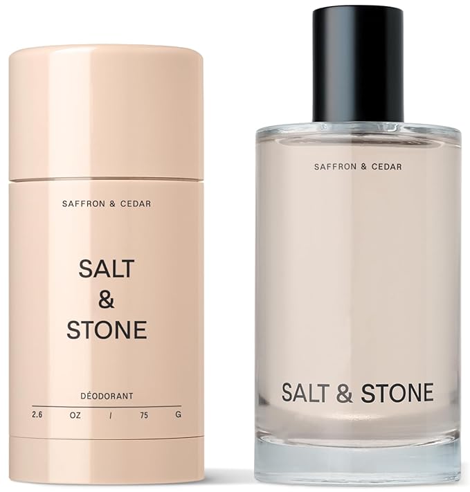 Salt & Stone Signature Scent Duo Set | 48 Hour Aluminum-Free Deodorant & Hydrating Body Mist | Skincare-Infused Deodorant & Body Spray | Saffron & Cedar