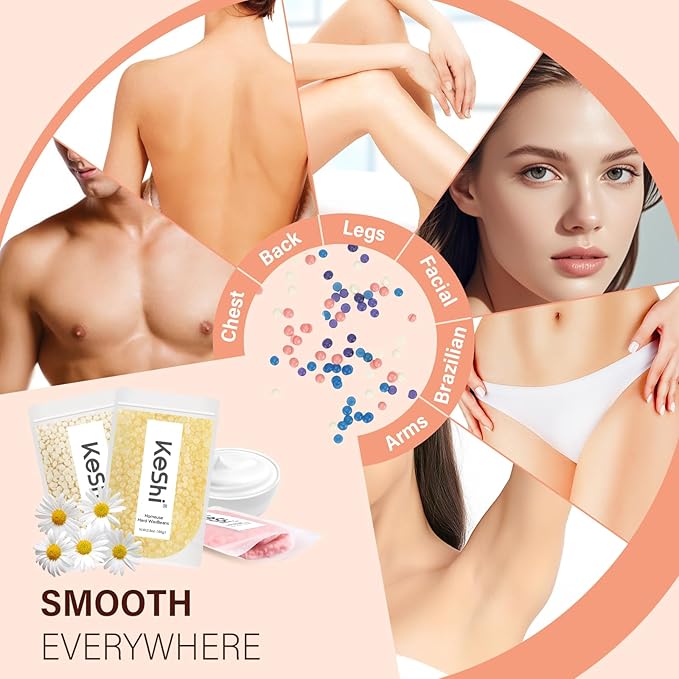 - Perfect Hair Removal Effect: Give you a new fresh experience for waxing at home at any time. This hard wax kit could save time and much money. Following the instructions you can do it by yourself. From stubborn coarse hair to the finest fuzz in armpit, bikini line, face, above upper lip, arms, legs and eyebrow wax kit. Leaving your skin clean and soft from head to toe. Avoid the embarrassing situation that the hairs growing so fast after shaving a few days.