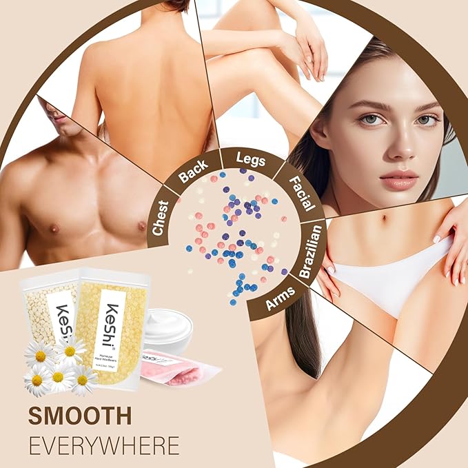 KeShi Waxing Kit, Painless Hair Removal Wax Warmer with 6 Bags Hard WaxBeans for Full Body, Legs, Face, Eyebrows & Bikini— Ideal for Both Women & Men(Cream)