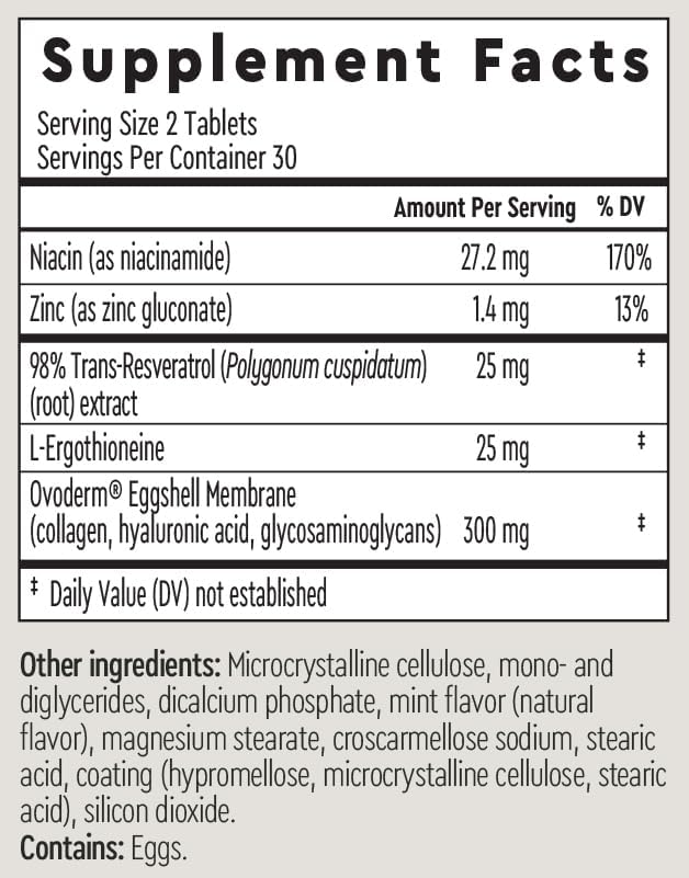 - SUPPORTS HEALTHY HAIR, SKIN & NAILS Formulated with resveratrol, niacinamide, and ergothioneine, this supplement delivers powerful antioxidants and nutrients that nourish from within, promoting radiant skin, stronger nails, and healthier-looking hair.
