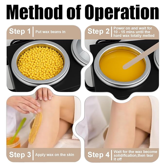 - 【Professional-Grade Wax Melting Capacity】Double wax warmer features two 4.52”diameter pots (600ML each), ideal for melting Brazilian wax beans, canned wax, cubes, or cakes. Perfect for full-body hair removal, facials, and spa treatments.
