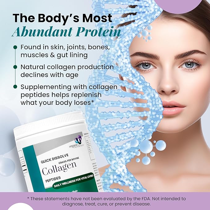 Organic Excellence Collagen Peptides, Grass-Fed Bovine Unflavored Collagen Powder Type I & III Hydrolyzed Collagen, Support Skin, Joints, Gut, Hair, Nails, Non-GMO, 12g Protein/Serving, 16 oz (453g)