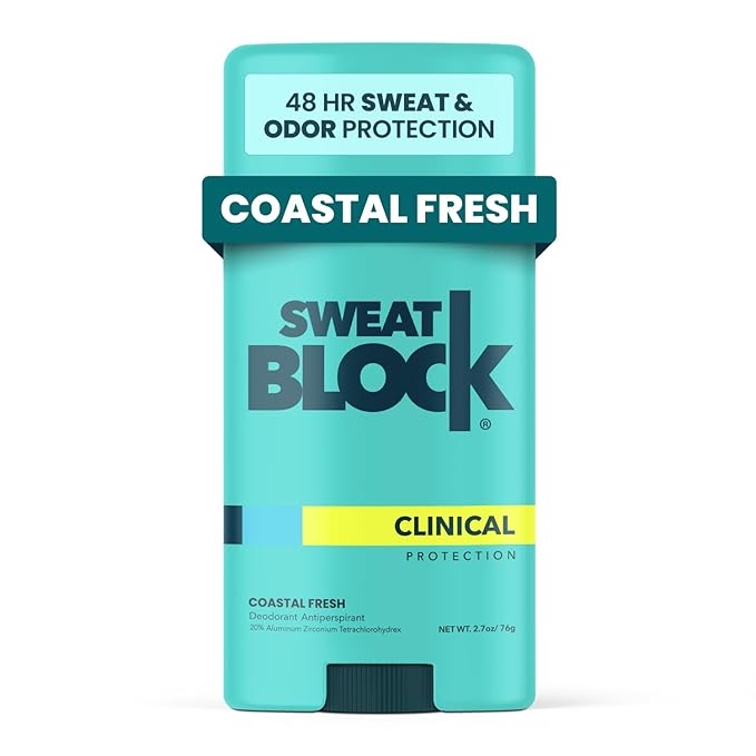 SweatBlock Deodorant Antiperspirant for Women & Men | 48 Hour High Degree Sweat & Odor Protection | Non Irritating Smooth Glide | Coastal Fresh Scent (1 Pack)