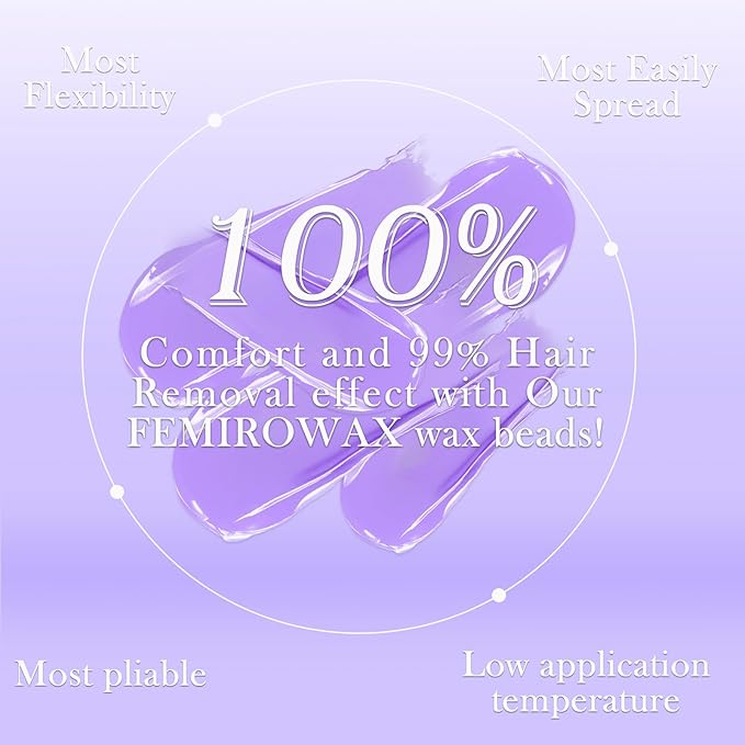 - LOW TEMPERATURE, MAXIMUN COMFORT: Melts at just 122°F (50°C) – 30% lower than traditional wax! Prevents burns even for beginners. Maintains creamy texture for smooth application on curved areas (knees/elbows). The flexible wax layer removes short hairs (up to 2mm) comfortably, minimizing ingrown risks.