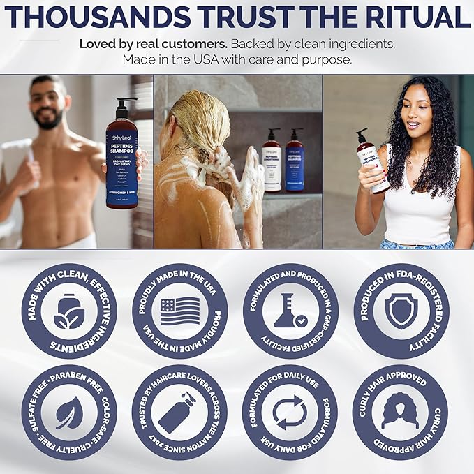 - FULLER-LOOKING HAIR WITH PEPTIDES & BIOTIN STARTS HERE – This anti-thinning peptide shampoo and conditioner set combines Biotin, Caffeine, and Saw Palmetto in a fortifying formula that helps strengthen strands, formulated to support scalp health, and give thinning hair the look of renewed density. Designed for women and men seeking thicker, more resilient hair.