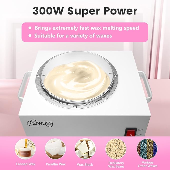 - 【3L large Capacity】The capacity of 3000ML is 6 times of ordinary wax warmer, which is enough for whole body hair removal. 300W super power brings extremely fast wax melting speed.