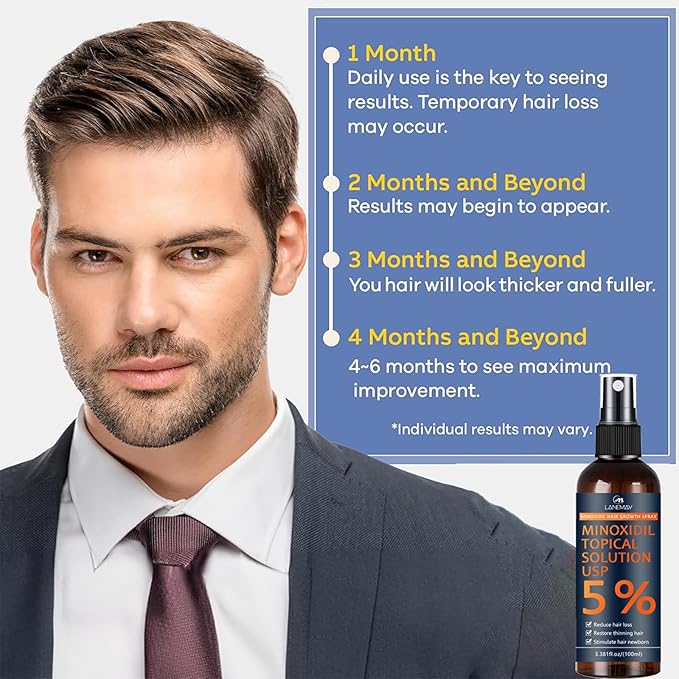- Dual-Action Formula—5% minoxidil and biotin work synergistically to activate hair follicle vitality, specifically improving thinning hair, reducing hair loss, and promoting thicker, fuller strands. Also effective for enhancing beard density in men.