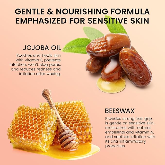 - Beeswax & Shea Butter- waxing strip Infused with skin-caring ingredients such as beeswax and shea butter, wax strips for hair removal face, wax strips face, the facial wax strips will nourish your skin.