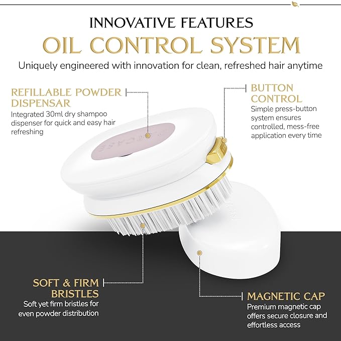 - šŖš¼šæš¹š±āš šš¶šæšš š®-š¶š»-š ššæš š¦šµš®šŗš½š¼š¼ šš®š¶šæ ššæšššµ: Experience the innovation of the first-ever dry shampoo hairbrush that dispenses powder at the press of a button. Designed as a full-sized hairbrush (not a small applicator) it ensures even, mess-free powder distribution through the bristles for refreshed roots and revived volume. A luxury tool that brings effortless beauty anywhere.