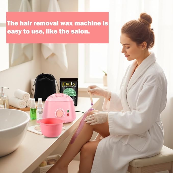 Wax Warmer Kit for Hair Removal - Hard Wax Kit for Sensitive Skin with Silicone Liner, 4 Bags Wax Beans - For Women Men, Face, Bikini, Brazilian, Body, Legs, Home Salon. (PINK)