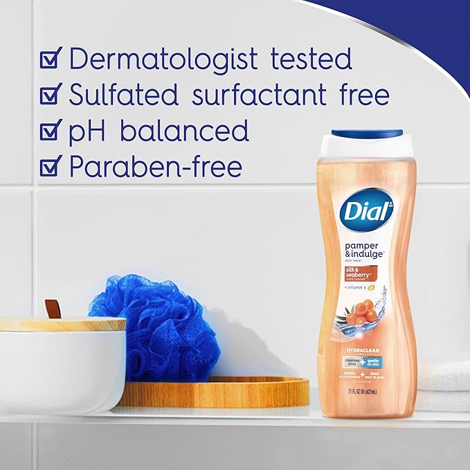 Dial Body Wash, Pamper & Indulge, Silk & Seaberry, 16 fl oz (Pack of 4)